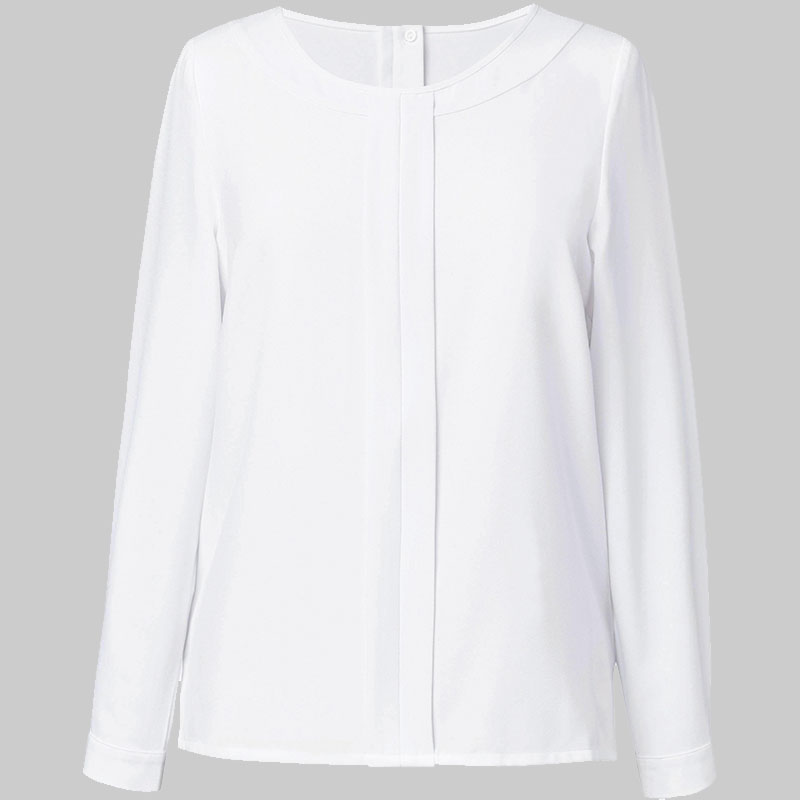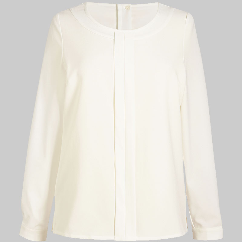 94% poliéster/6% elastano. Blusa de manga comprida em crepe da China. Botão dourado nos punhos e fecho dourado na parte traseira. Tratamento fácil. Lavável à máquina.