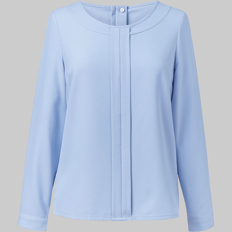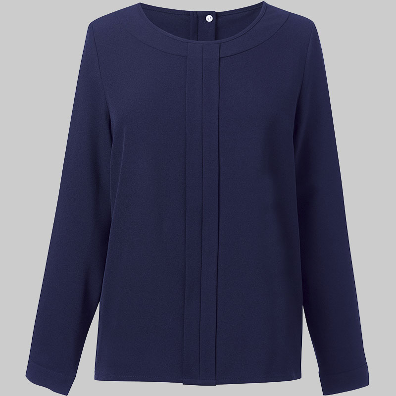 100% poliéster. Blusa de manga comprida em crepe da China. Botão dourado nos punhos e fecho dourado na parte traseira. Tratamento fácil. Lavável à máquina.