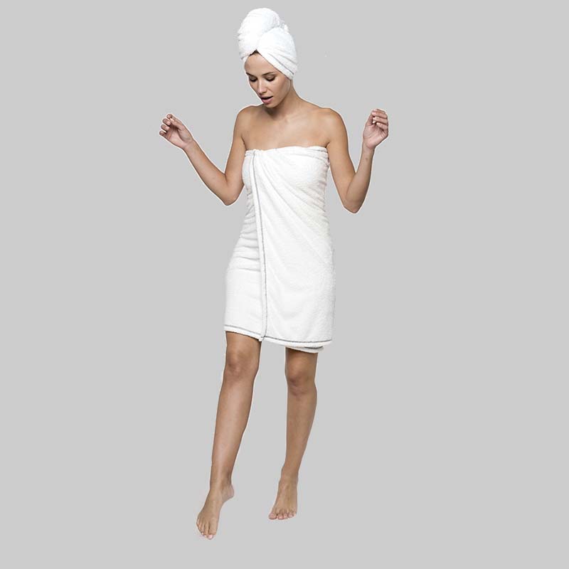 80% poliéster / 20% poliamida. Material muito suave e de secagem rápida. Sistema de fixação elástico que permite manter a toalha enrolada. Pespontos e presilha em contraste. Gramagem: 220 g/m².
