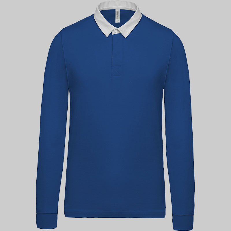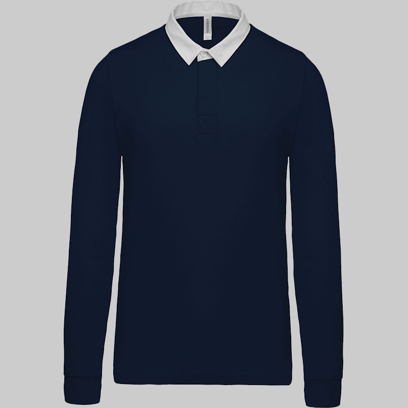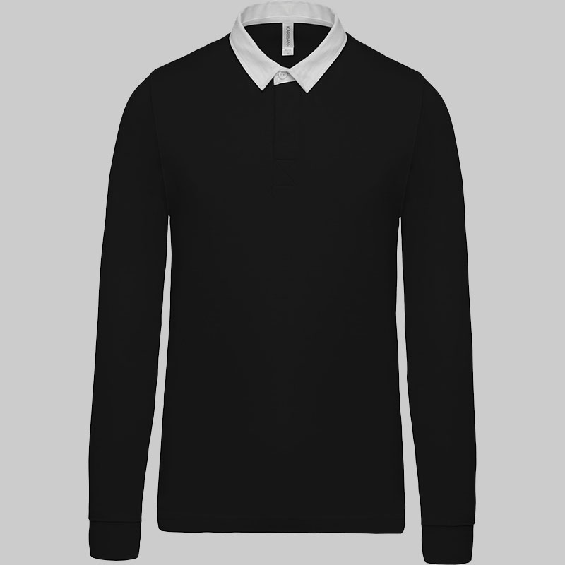 100% algodão jersey penteado pré-encolhido. Colarinho em sarja de algodão com contraste em branco (excepto cor Red com colarinho em preto). Carcela com 3 botões. Punhos em malha 1×1. Tapa costuras fashion no interior do colarinho e aberturas laterais. Gramagem: 280 g/m².