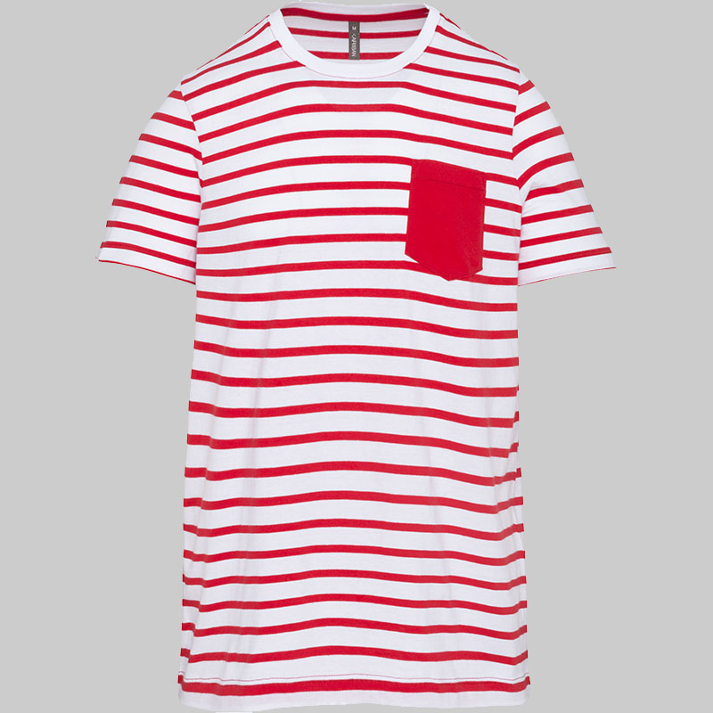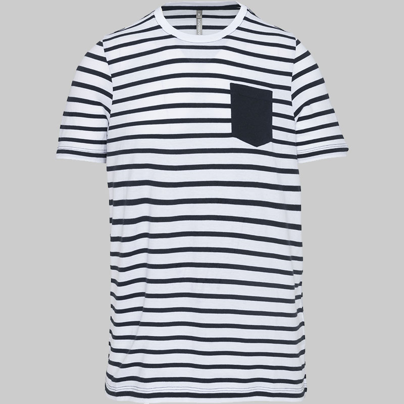 100% algodão. Malha jersey em algodão penteado. Suave ao toque. Decote redondo com acabamento em malha rib. Bolso no peito esquerdo em contraste. Tapa costuras no decote em contraste. Acabamento da manga e bainha com costura dupla. Gramagem: 160 g/m².