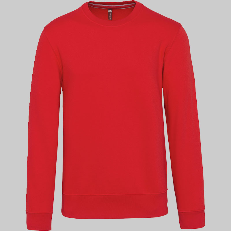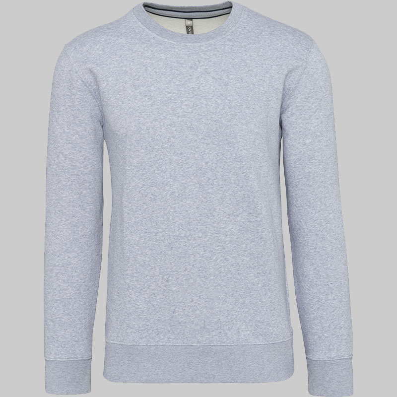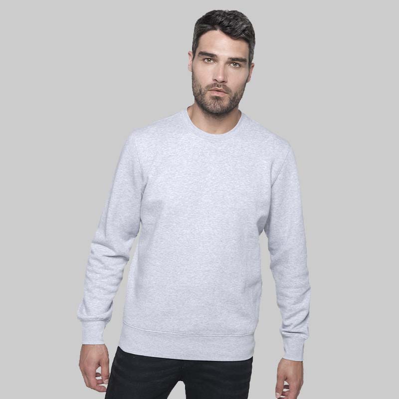80% algodão / 20% poliéster. Tratamento LSF (Low Shrinkage Fleece: cardado pré-encolhido). Interior cardado com 3 fios em algodão penteado. Mangas direitas. Tapa costuras em contraste (contraste em Oxford Grey para todas as cores e na cor Oxford Grey o contraste é em navy). Acabamento dos punhos e cós em malha rib. Gramagem: 300 g/m².