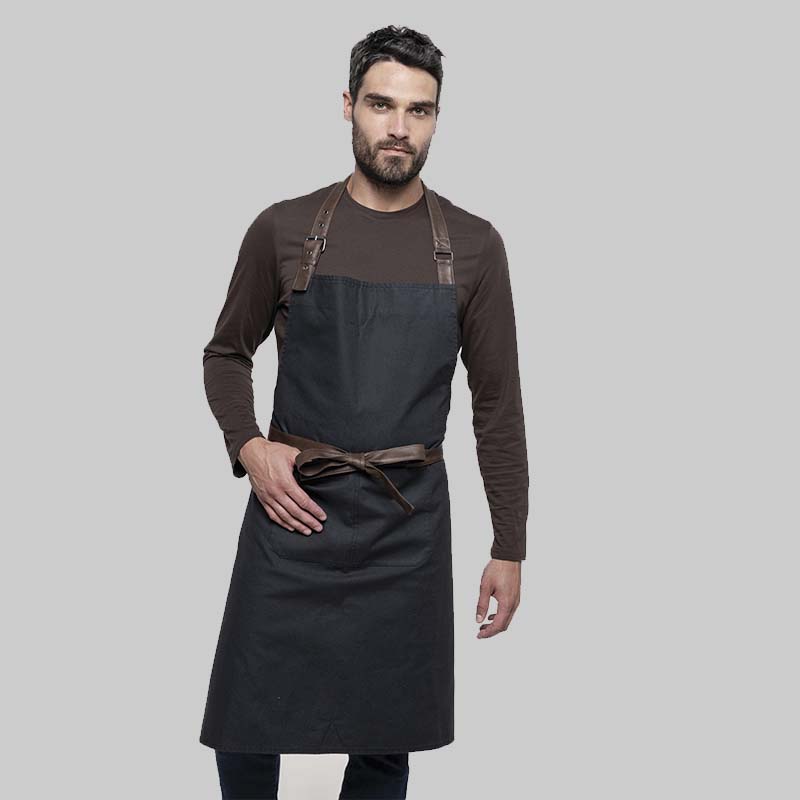 100% algodão. Tecido canvas. Fivela de ajuste metálica com ilhós ao nível do pescoço para ajustar o comprimento do avental. Fivelas para apertar em tecido fantasia. Bolso grande à frente com dois compartimentos. Dimensões: A 90 cm – C 76 cm. Bolso: A 20 cm – C 31,5 cm. Este produto foi submetido a um tratamento especial apresentando um aspecto intencionalmente envelhecido. Este procedimento implica variação de cor de produto para produto tornando cada peça única. Gramagem: 320 g/m².