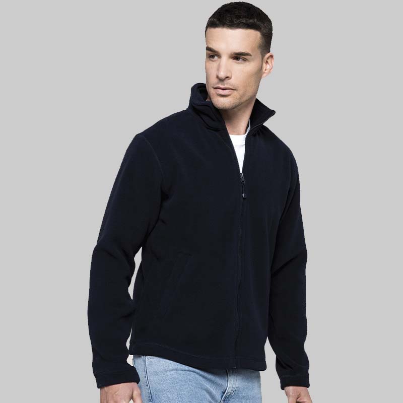 100% poliéster micropolar com tratamento anti borboto. 2 bolsos frontais com fecho. Gramagem: 400 g/m².