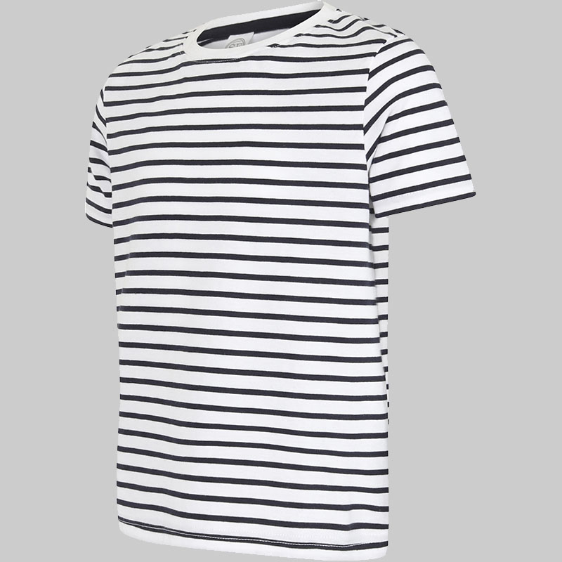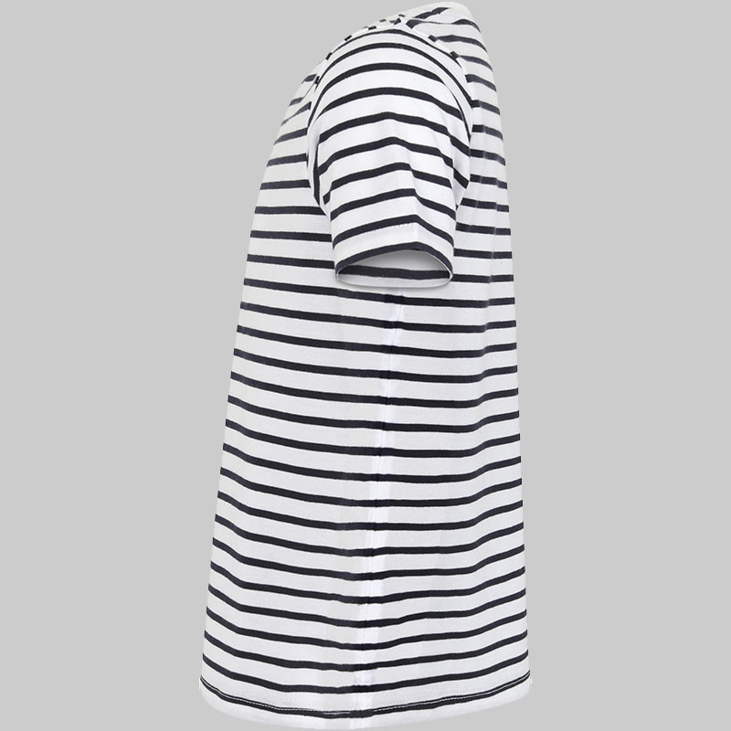 100% algodão. Malha jersey. Unissexo. Corte clássico. Decote em malha canelada extensível. Tapa costuras no decote em jersey simples. Costura dupla. Gramagem: 160 g/m².