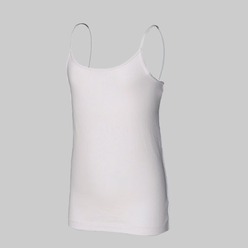96% algodão / 4% elastano. Malha jersey. Alças finas ajustáveis. Corte mais comprido. Gramagem: 190 g/m².