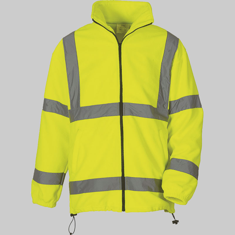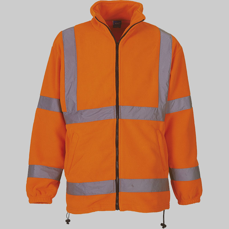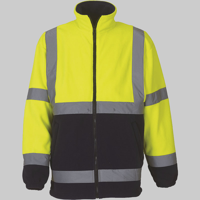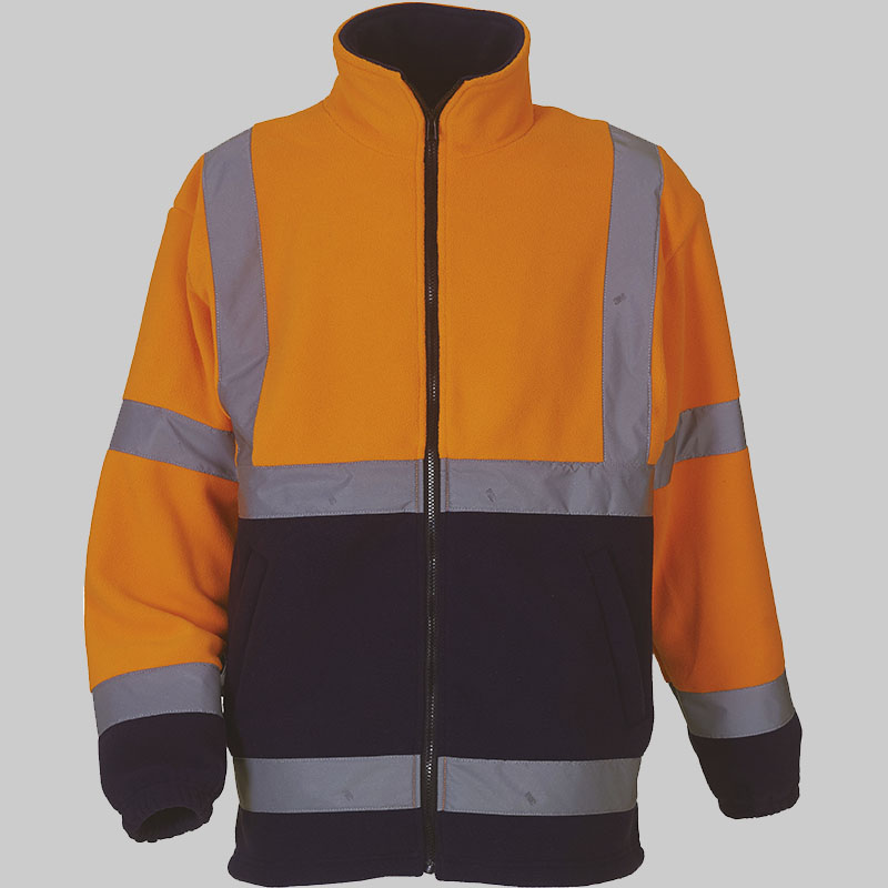 100% poliéster. Duas bandas retrorreflectoras 3M no corpo e braços e uma banda em cada ombro. Fecho a todo o comprimento à frente. Punhos e cós elásticos. Dois bolsos inferiores com detalhes. Gola alta. Em conformidade com a norma EN ISO20471:2013 Classe 3. Hi-Vis Orange e Hi-Vis Orange/Navy também em conformidade com a norma GO/RT 3279.